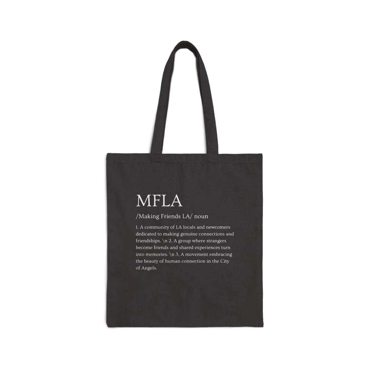 Products The MFLA Definition Cotton Canvas Tote Bag $25.45 M.F.L.A Making Friends Los Angeles Cotton Canvas Tote Bag $18.00 M.F.L.A Making Friends La Unisex Heavy Cotton Tee $25.00 M.F.L.A Making Friends LA Distressed Cap $23.63 Kiss-Cut Stickers $2.32